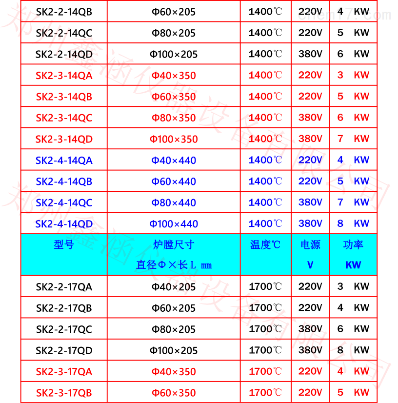 管徑從40至120MM不等,加熱長度為200至2000MM